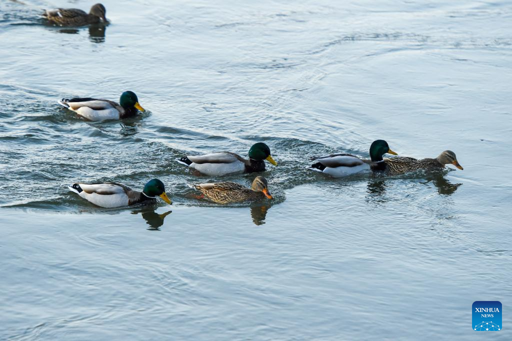 Aves fotografiadas sobre las aguas de la isla Changbai en la ciudad de Jilin, provincia de Jilin, noreste de China, el 28 de enero de 2026. (Xinhua/Zhang Nan).