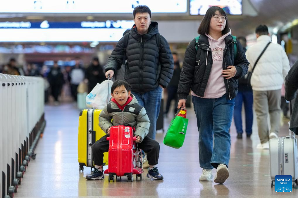 Pasajeros en la estación ferroviaria Beijing Oeste, en la capital de China, el 2 de febrero de 2026. (Xinhua/Ju Huanzong).
