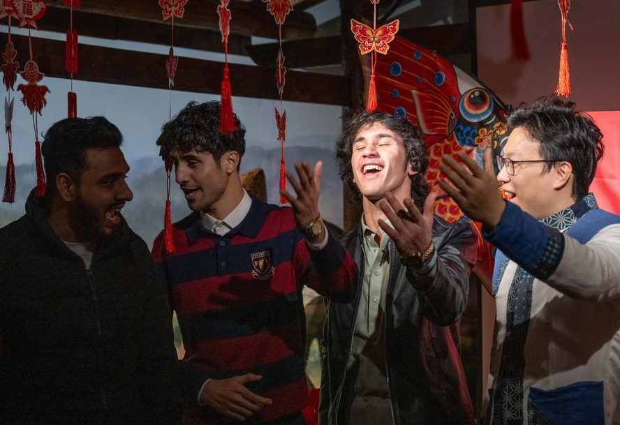 Estudiantes extranjeros disfrutan del ambiente festivo en Chongqing, suroeste de China