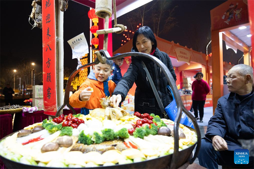 La gente aprende sobre una especialidad culinaria en un evento temático sobre la «Temporada Internacional de Consumo de la Nueva Primavera de Hubei» en Wuhan, provincia de Hubei, el 5 de febrero de 2026. (Xinhua/Xiao Yijiu).