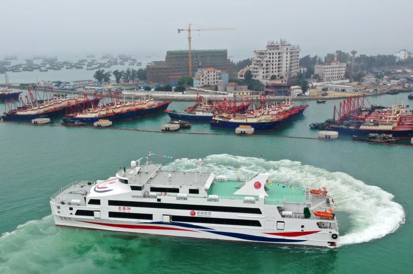 Barco de alta velocidad con capacidad para 1200 pasajeros entra en servicio en Beihai, sur de China