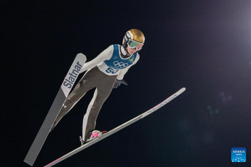 Imagen del 7 de febrero de 2026 de Nika Prevc, de Eslovenia, compitiendo durante el trampolín normal individual femenino de salto de esquí en los Juegos Olímpicos de Invierno Milán-Cortina 2026, en Predazzo, Italia. (Xinhua/Huang Wei)