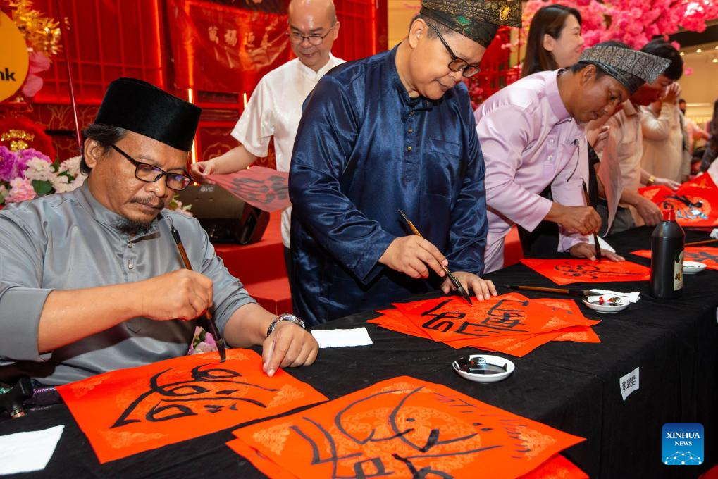 Personas participan en un evento de caligrafía para celebrar el próximo Festival de la Primavera, en Kuala Lumpur, Malasia, el 8 de febrero de 2026. (Xinhua/Chong Voon Chung)