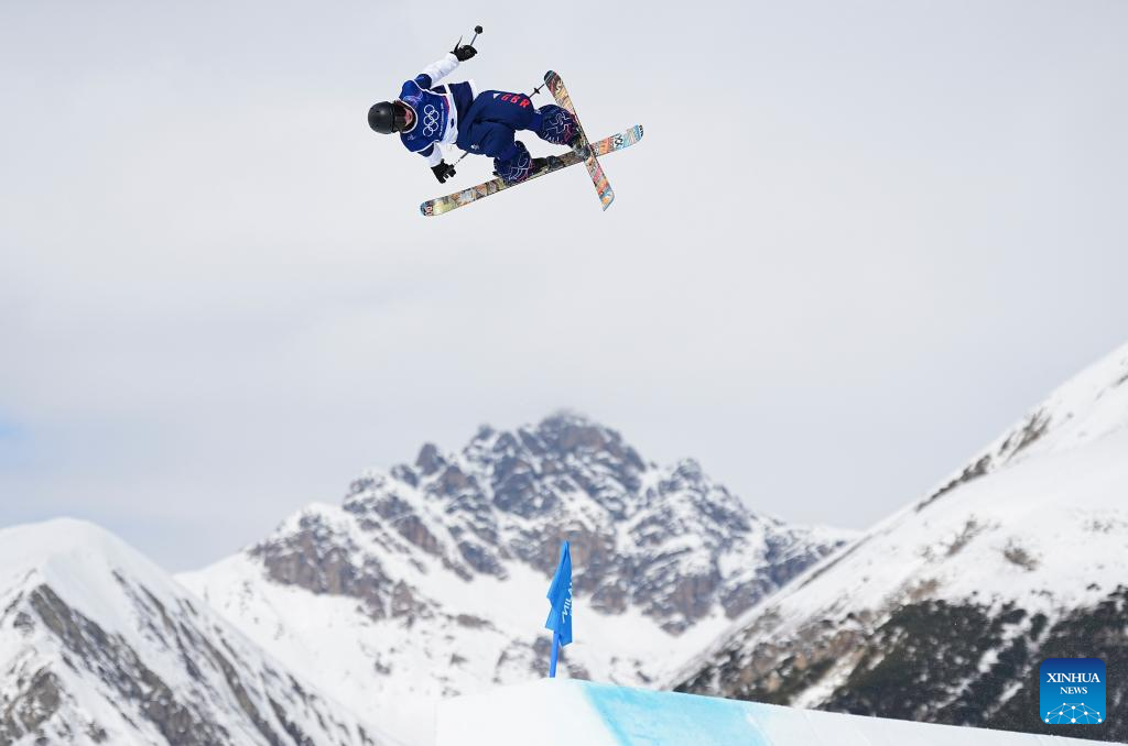 Kirsty Muir, de Reino Unido, compite durante la final de esquí slopestyle femenino de esquí acrobático en los Juegos Olímpicos de Invierno Milán-Cortina 2026, en Livigno, Italia, el 9 de febrero de 2026. (Xinhua/Wu Huiwo)