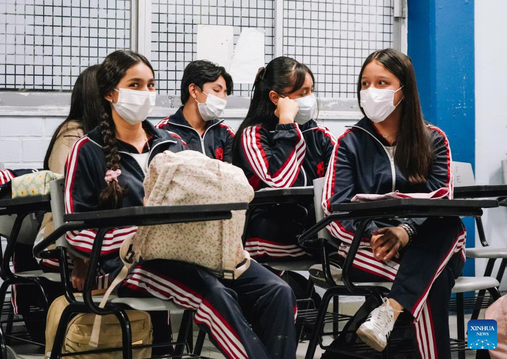Imagen del 9 de febrero de 2026 de estudiantes portando cubrebocas como medida preventiva ante el aumento de casos de sarampión, en Zapopan, estado de Jalisco, México. México enfrenta en 2026 el brote de sarampión más severo registrado en décadas, lo que ha obligado a los gobiernos estatales a adoptar estrategias sanitarias diferenciadas para contener la propagación del virus, en un contexto marcado por la alerta epidemiológica emitida por la Organización Panamericana de la Salud y por brechas persistentes de vacunación. (Xinhua/Str)
