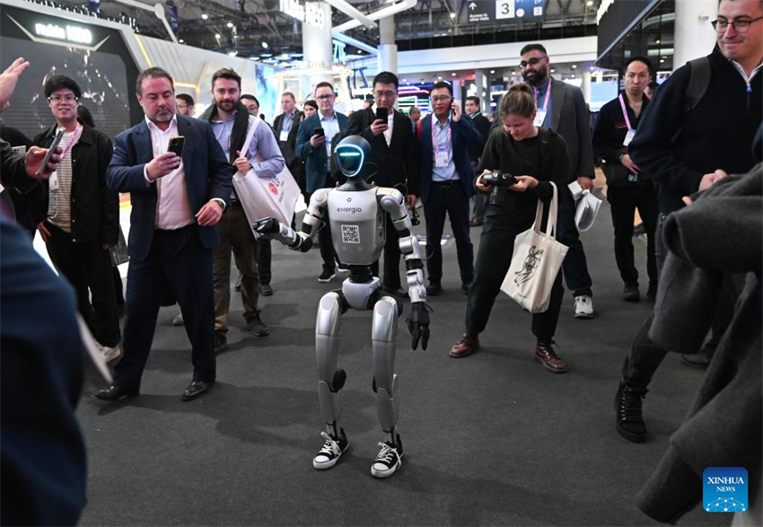 Robot humanoide visto durante el Congreso Mundial de Móviles (MWC) 2026 en Barcelona, España, el 2 de marzo de 2026. (Xinhua/Cheng Min).