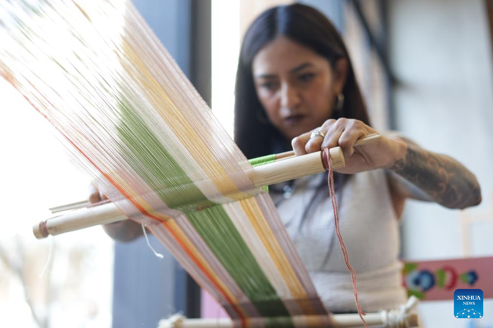 Imagen del 25 de febrero de 2026 de una mujer realizando un tejido en un taller en el espacio público El Arsenal, en la Ciudad de México, capital de México. México fortalece la formación y la producción cultural con la reciente creación de El Arsenal, un espacio público orientado a la profesionalización en artes y oficios que amplía el acceso a la educación artística, mediante un modelo flexible con un enfoque basado en la experimentación, la creación colectiva y el intercambio de saberes. (Xinhua/Francisco Cañedo)