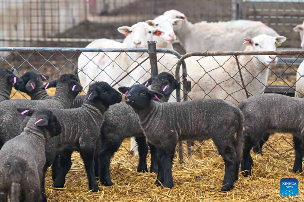 Esta foto tomada el 3 de marzo de 2026 muestra corderos (delante) en un redil del distrito de Manas, en la prefectura autónoma de la etnia Hui de Changji, región autónoma uygur de Xinjiang, al noroeste de China. (Xinhua/Ding Lei).