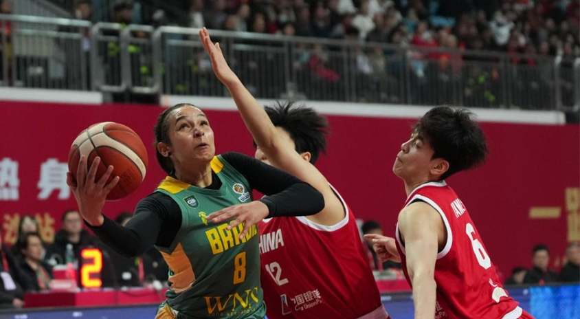 Las jugadoras de China celebran tras ganar un partido amistoso entre China y Brasil en Changsha, provincia de Hunan, en el centro de China, el 4 de marzo de 2026. (Xinhua/Chen Zhenhai).