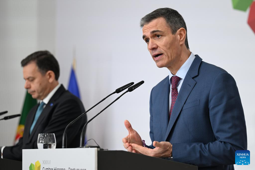Imagen proveída por La Moncloa del presidente del Gobierno español, Pedro Sánchez (d), hablando durante una conferencia de prensa después de la Cumbre Hispano-Portuguesa, en La Rábida, en Huelva, España, el 6 de marzo de 2026. Sánchez afirmó el viernes que la acción militar de Estados Unidos e Israel contra Irán constituye un "error extraordinario" y rechazó las críticas del presidente estadounidense, Donald Trump, por la negativa de España a permitir que Estados Unidos utilice sus bases en el país en el actual asalto aéreo. (Xinhua/La Moncloa)