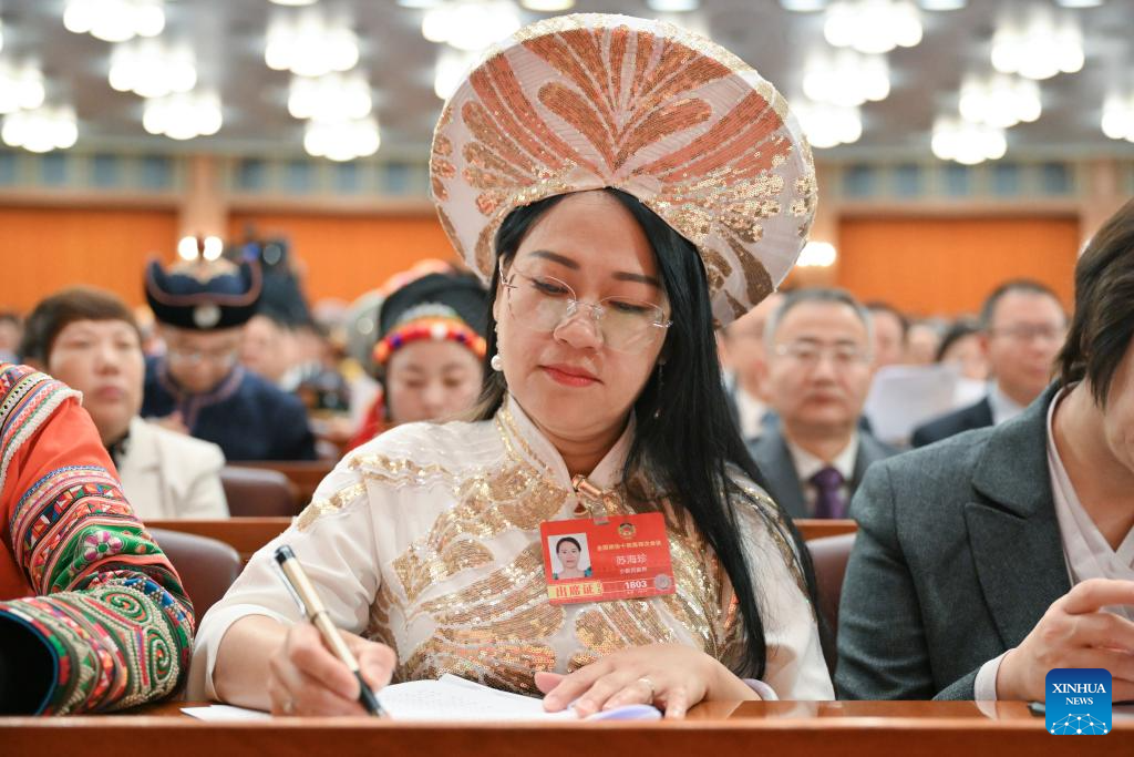 Su Haizhen, miembro del 14.º Comité Nacional de la Conferencia Consultiva Política del Pueblo Chino (CCPPCh), asiste a la reunión inaugural de la cuarta sesión del 14.º Comité Nacional de la CCPPCh en el Gran Palacio del Pueblo en Beijing, capital de China, el 4 de marzo de 2026. (Xinhua/Chen Yichen).