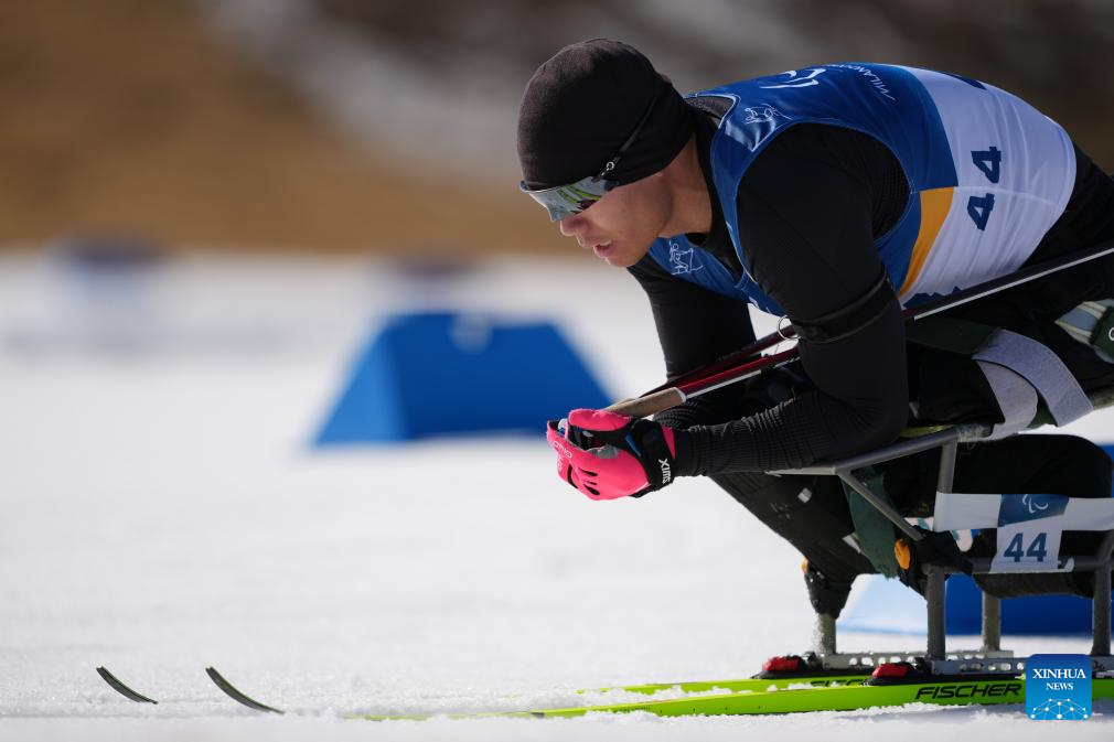 Liu Zixu, de China, compite durante la final de individual masculino sentado de para biatlón en los Juegos Paralímpicos de Invierno Milán-Cortina 2026, en Tesero, Italia, el 8 de marzo de 2026. (Xinhua/Lian Zhen)