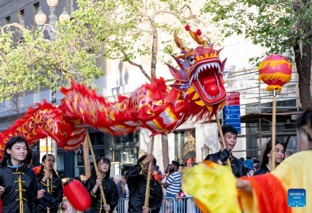 Imagen del 7 de marzo de 2026 de personas asistiendo a un desfile de carros alegóricos para celebrar el Año Nuevo Lunar chino, en San Francisco, Estados Unidos. (Xinhua/Dong Xudong)