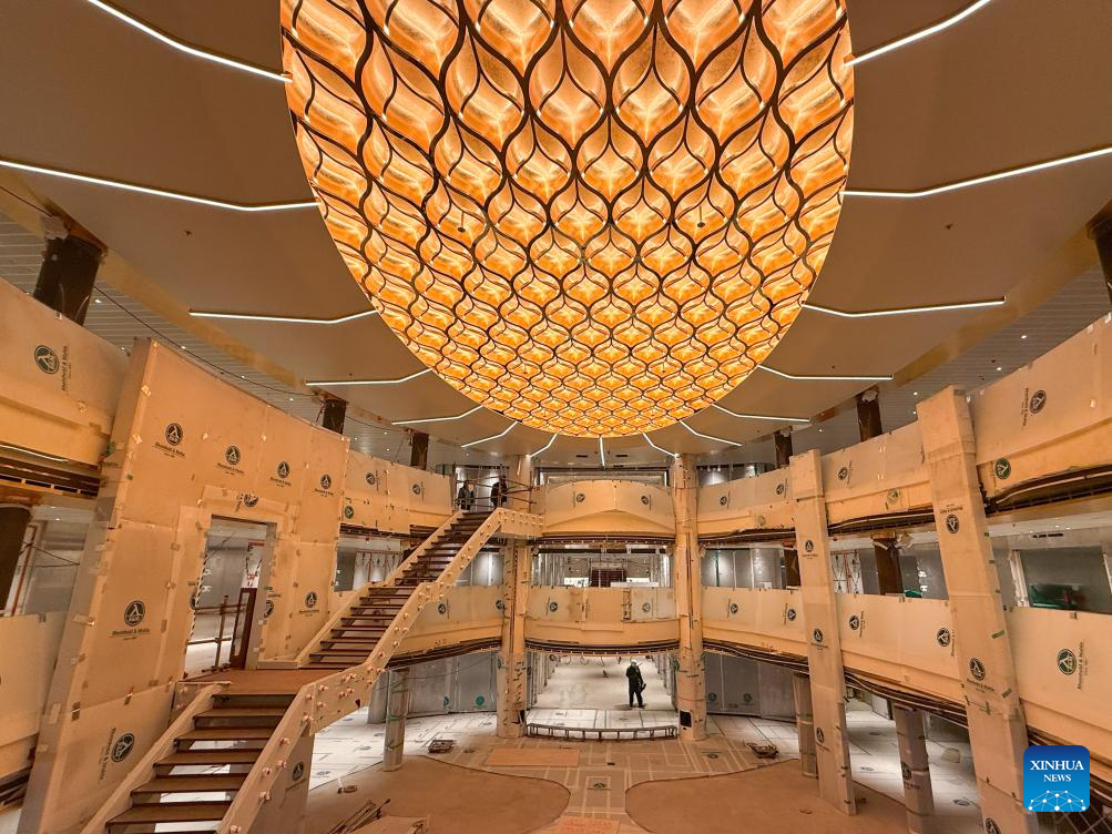 Esta foto, tomada el 16 de marzo de 2026, muestra el interior del gran crucero Adora Flora City en Shanghai, al este de China. (Xinhua/Ding Ting).