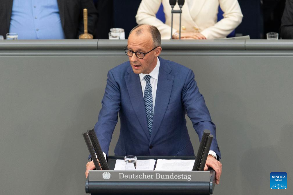 El canciller de Alemania, Friedrich Merz, pronuncia un discurso en el Bundestag, la Cámara Baja del Parlamento alemán, en Berlín, Alemania, el 18 de marzo de 2026. Merz pidió el miércoles esfuerzos para lograr pronto el fin de la guerra contra Irán a través de medios diplomáticos, y advirtió que el actual conflicto daña a todas las partes, incluyendo a Estados Unidos. (Xinhua/Zhang Haofu)