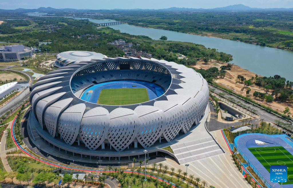 Vista aérea tomada con un dron el 19 de marzo de 2026 de un centro deportivo, en la ciudad de Qionghai, en la provincia de Hainan, en el sur de China. El Foro de Boao para Asia ha estado impulsando el desarrollo general de la ciudad durante 25 años desde su creación en 2001. (Xinhua/Guo Cheng)
