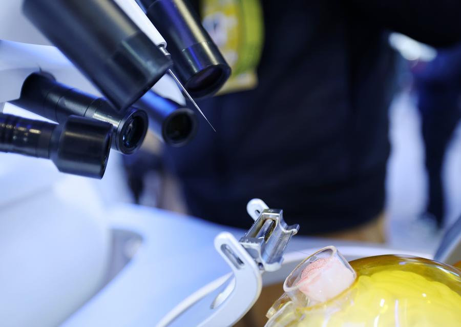 Esta fotografía, tomada el 24 de marzo de 2026, muestra un sistema de interfaz cerebro-ordenador invasivo de alto rendimiento en el Centro de Exposiciones de Zhongguancun, en Beijing, capital de China. (Xinhua/Zhang Chenlin).
