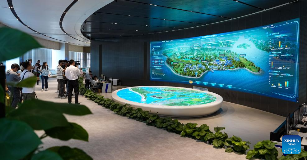 Imagen del 23 de marzo de 2026 de un centro de gestión de operaciones de la zona de demostración de cero emisiones carbono de Boao, en Boao, en la provincia de Hainan, en el sur de China. Desde que la "Zona de Demostración de Emisiones de Carbono Casi Nulas de Boao" pasó a llamarse "Zona de Demostración de Cero Emisiones Carbono de Boao" en marzo de 2025, la zona ha logrado un progreso notable en materia de ahorro energético y reducción de las emisiones de carbono y ha entrado de lleno en una fase de funcionamiento normalizado con cero emisiones de carbono. (Xinhua/Yang Guanyu)