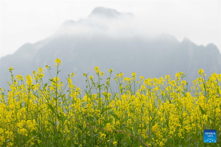 Esta foto, tomada el 22 de marzo de 2026, muestra flores de colza en la aldea de Xingfu, distrito de Jixi, ciudad de Xuancheng, provincia de Anhui, en el este de China. (Xinhua/Zhang Duan).