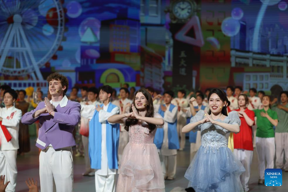 Artistas actúan durante la ceremonia de inauguración del 10.º Campeonato Mundial Juvenil de Wushu en Tianjin, al norte de China, el 25 de marzo de 2026. (Xinhua/Sun Fanyue).