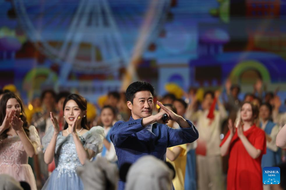 El embajador de la Federación Internacional de Wushu, Wu Jing (centro), durante la ceremonia de inauguración del 10.º Campeonato Mundial Juvenil de Wushu en Tianjin, norte de China, el 25 de marzo de 2026. (Xinhua/Sun Fanyue).