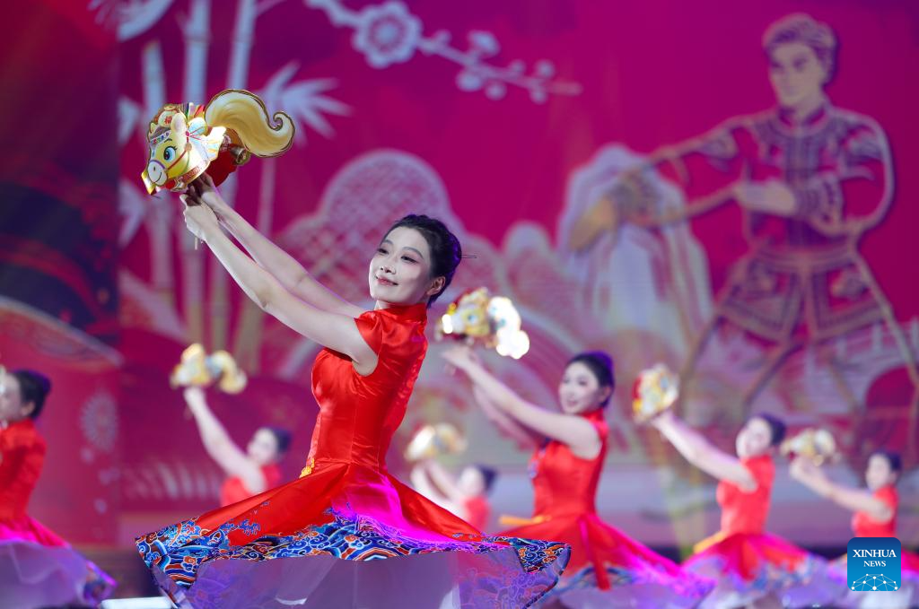 Artistas actúan durante la ceremonia de inauguración del 10.º Campeonato Mundial Juvenil de Wushu en Tianjin, al norte de China, el 25 de marzo de 2026. (Xinhua/Sun Fanyue).