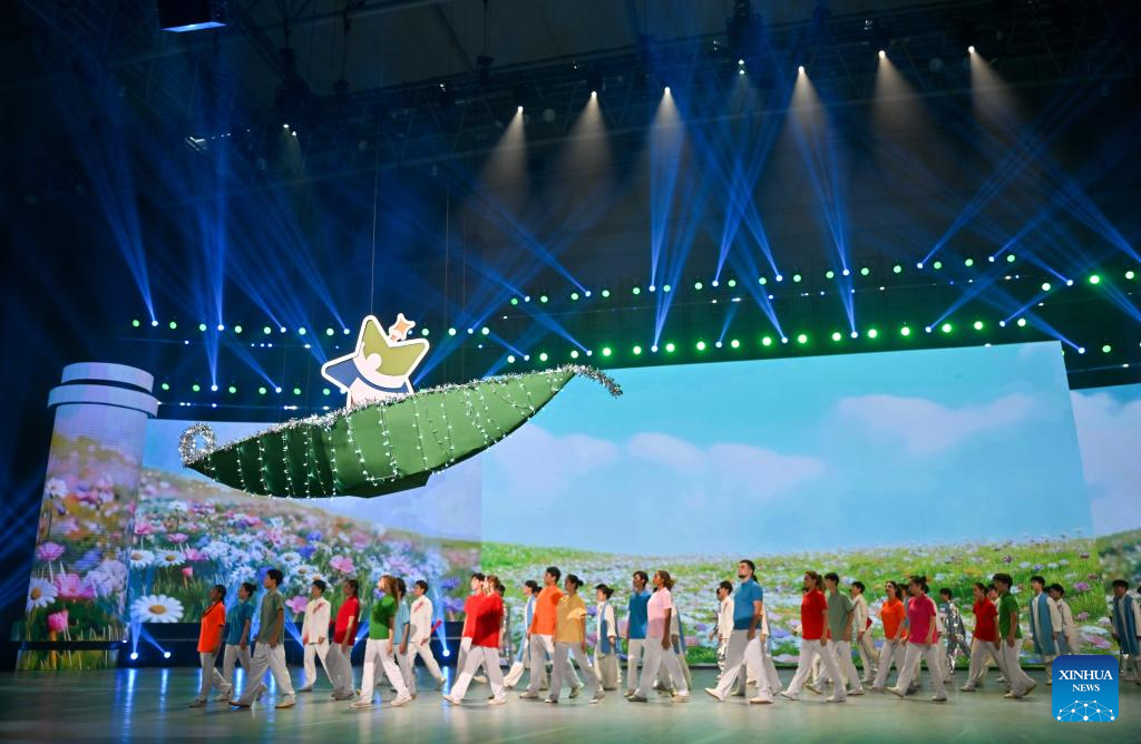 Artistas actúan durante la ceremonia de inauguración del 10.º Campeonato Mundial Juvenil de Wushu en Tianjin, norte de China, el 25 de marzo de 2026. (Xinhua/Sun Fanyue).