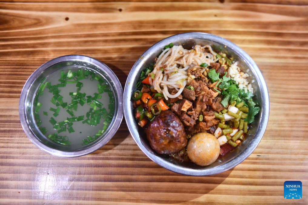 Esta fotografía, tomada el 3 de marzo de 2026, muestra un plato de lyufen en un restaurante del distrito de Rong'an, en la ciudad de Liuzhou, situada en la región autónoma de la etnia zhuang de Guangxi, al sur de China. (Xinhua/Huang Xiaobang).
