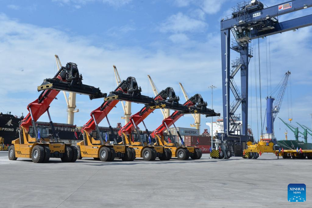 Imagen del 25 de marzo de 2026 de nueva maquinaria en una terminal portuaria, en Corinto, Nicaragua. Nicaragua modernizó su principal puerto en el Pacífico, Corinto, con ayuda financiera y técnica de China, en un esfuerzo por ampliar su capacidad logística y fortalecer su inserción en el comercio global. (Xinhua/Noelia Aráuz)