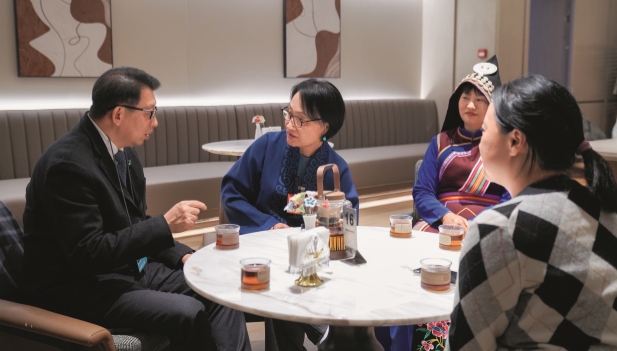 6 de marzo de 2026. Qiu Jinghui (primero a la izq.) conversa con las diputadas de la APN de la provincia de Yunnan en la residencia de la delegación de Yunnan, en Beijing. Zhang Wei