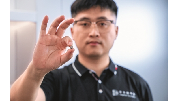 24 de abril de 2025. Yu Chen, cofundador de Haptron Scientific, muestra un microsensor de solo 8,5 mm en la sucursal de Shenzhen del Parque de Ciencia de Hong Kong, en la Zona de Hetao para la Cooperación en Innovación Científica y Tecnológica Shenzhen-Hong Kong. Xinhua