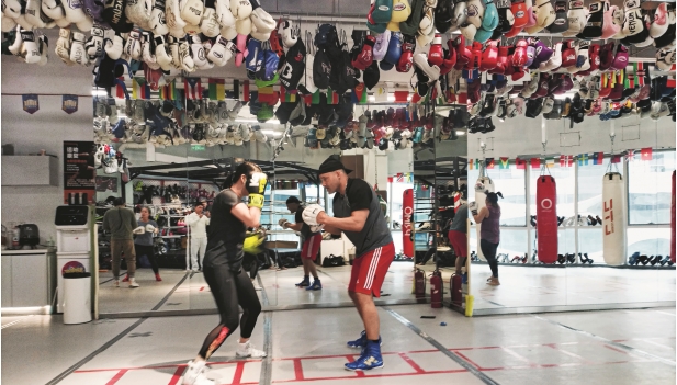 13 de marzo de 2026. Una alumna se prepara para lanzar un gancho a los guantes de Gamboa en el gimnasio SOHO Galaxy del distrito de Chaoyang, Beijing. Álvaro Lorite López