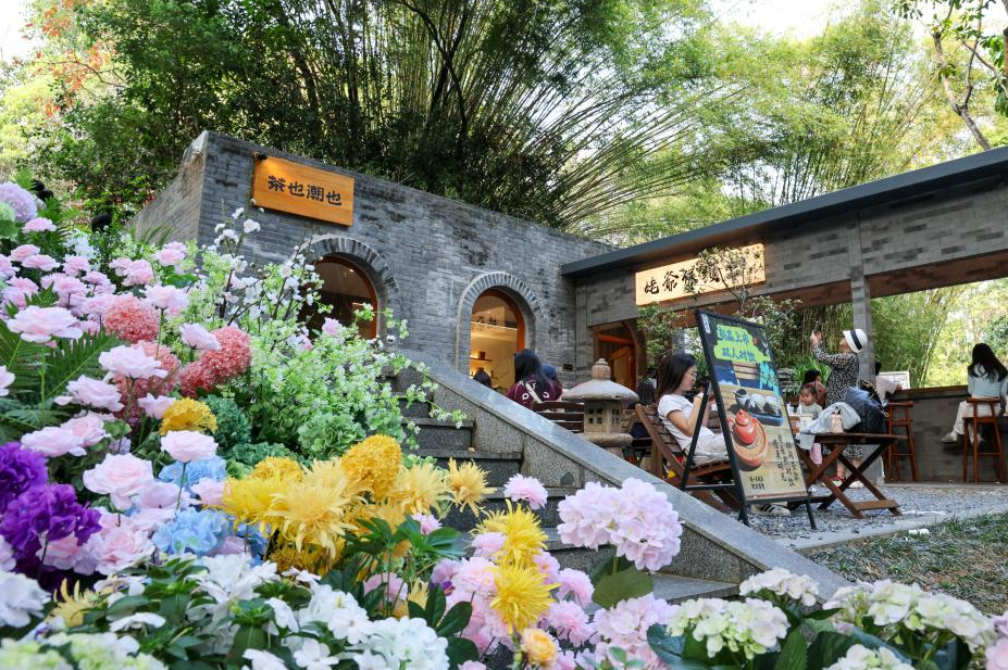 Turistas leen y disfrutan de la comida en una cafetería-librería del parque del talento de Shenzhen, ciudad de Shenzhen, provincia de Guangdong, al sur de China, el 1 de abril de 2026. En los últimos años, Shenzhen ha mejorado la experiencia de los ciudadanos en los parques añadiendo diversas funciones a los parques tradicionales. Como parte de esta iniciativa, la ciudad ha puesto en marcha el proyecto «Park BOX» en el Parque de la Bahía de Shenzhen, que cuenta con múltiples espacios públicos combinados con diseño artístico e instalaciones de apoyo convenientes, como cafeterías-bares de libros y servicios de entrega con drones. Shenzhen también ha aprovechado los recursos de las zonas comerciales circundantes para integrar mejor los espacios ecológicos en la vida urbana, satisfaciendo la demanda del público de experiencias diversas y de alta calidad en los parques. (Xinhua/Mao Siqian).
