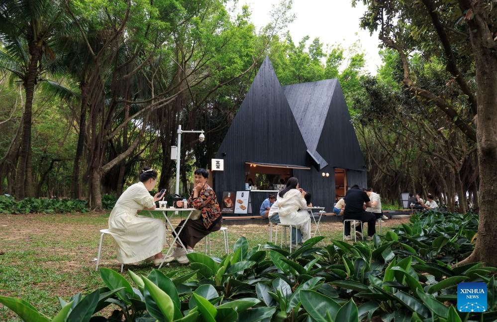 Turistas disfrutan de comida y bebida en un local del proyecto «Park BOX» en el Parque de la Bahía de Shenzhen, el 29 de marzo de 2026. (Xinhua/Mao Siqian).