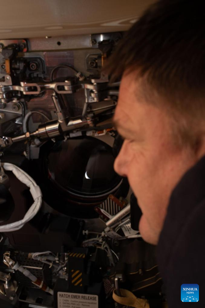 El astronauta de la Agencia Espacial Canadiense, Jeremy Hansen, se asoma por una de las ventanillas de la nave espacial Orión para mirar hacia la Tierra, el 6 de abril de 2026. La tripulación de la misión Artemis II batió el lunes el récord de la mayor distancia de la Tierra a la que hayan llegado los seres humanos, al superar el hito logrado por Apolo 13 en abril de 1970, indicó la NASA. (Xinhua/NASA)