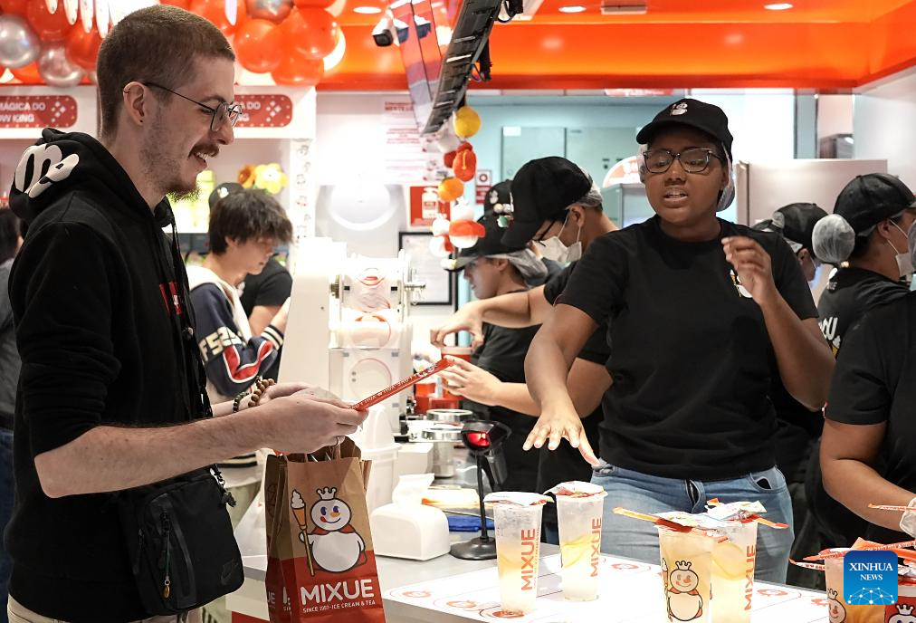 "Probé el helado y me pareció muy bueno, muy cremoso. Conocí la marca por TikTok y vine a experimentar un poco de la cultura china aquí en Brasil", dijo a Xinhua la brasileña Ana Karine.