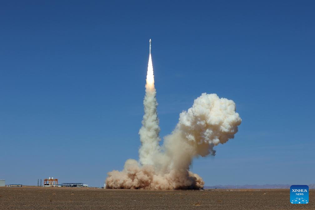 Un cohete portador Lijian-1 Y12 transportando ocho satélites despega desde la Zona Piloto de Innovación Espacial Comercial de Dongfeng, en el noroeste de China, el 14 de abril de 2026. El cohete despegó a las 12:03 horas (hora de Beijing) y colocó los satélites en sus órbitas planificadas exitosamente. (Xinhua/Wang Haixia)