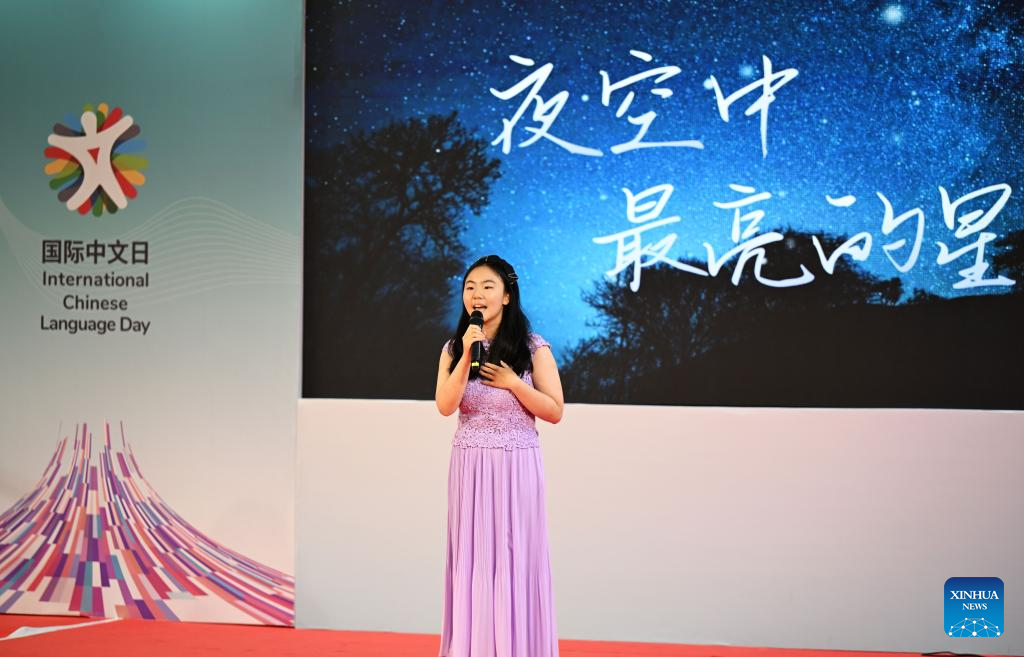 Un artista canta una canción china durante un acto de celebración con motivo del Día Internacional de la Lengua China en Río de Janeiro, Brasil, el 15 de abril de 2026. (Xinhua/Jin Haoyuan).