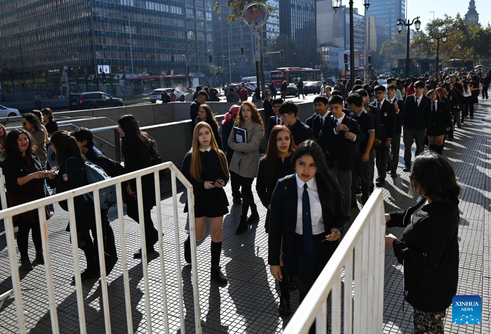 Personas se forman para recibir un ejemplar gratuito de la antología "La palabra maldita y otros escritos urgentes" de la poeta y ensayista chilena, Gabriela Mistral, durante la actividad Libros Libres en el marco del Día Internacional del Libro, en Santiago, capital de Chile, el 23 de abril de 2026. En Santiago de Chile celebraron el jueves el Día Internacional del Libro releyendo a la Premio Nobel de Literatura Gabriela Mistral de 1945 para entender los actuales "tiempos convulsos", destacaron los organizadores de la Universidad de Chile, quienes regalaron 3.000 copias de una nueva antología de la poeta y ensayista. (Xinhua/Jorge Villegas)