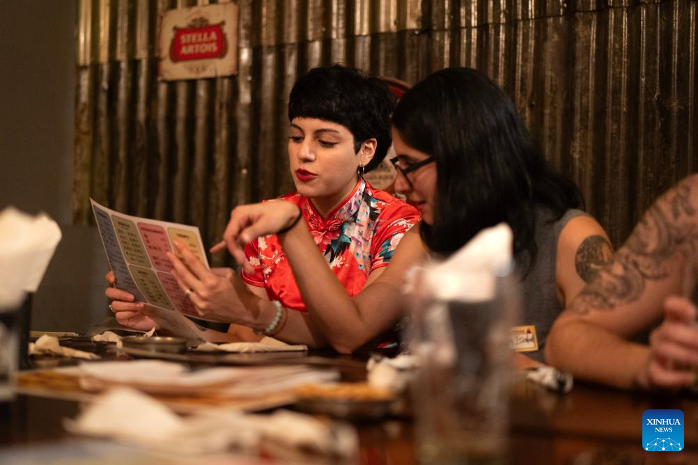 Imagen del 25 de abril de 2026 de jóvenes miembros de la comunidad de entusiastas de la cultura china "Gauchinos" participando en una actividad durante un encuentro llevado a cabo en un bar, en la ciudad de Buenos Aires, capital de Argentina. Un grupo de jóvenes argentinos bajo el nombre de Gauchinos organiza encuentros en bares de la ciudad de Buenos Aires con el objetivo de combinar el intercambio lingüístico entre el castellano y el chino en una propuesta que une elementos característicos de ambas culturas. (Xinhua/Martín Zabala)